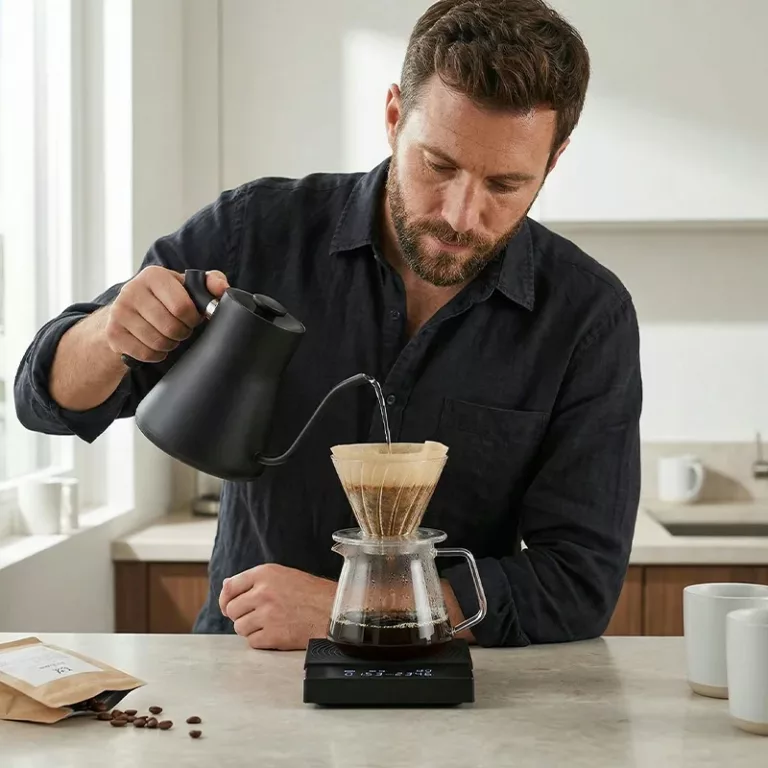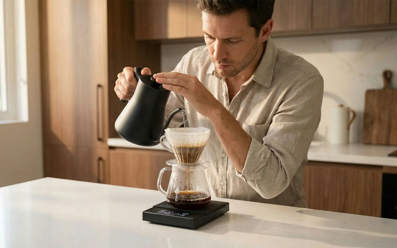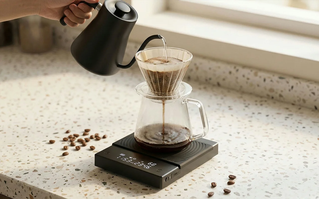 Built countdown keeps blooming and pouring controlled during every brew. Auto feature starts measuring once flow begins, avoiding rushed button presses.