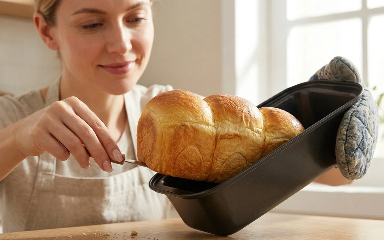 Nygex Carbon tin helps beginners create bakery style results easily. Strong walls spread heat evenly for soft centres and golden crusts. Non-stick surface lets every loaf slide out effortlessly intact. Light pan makes lifting safe while children assist with baking.