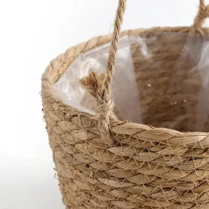 Nygex macrame holder turns unused space into calming nature. Handmade jute weave brings gentle warmth into every dull room. Strong ropes keep favourite foliage safely displayed above busy floors. Plastic lining stops leaks, so furniture and carpets stay spotless.