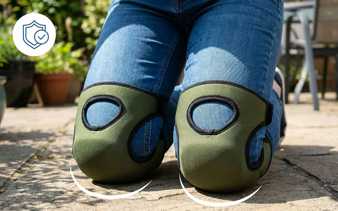 Deep foam padding spreads weight evenly over sensitive areas. Knees feel relaxed even after long sessions cleaning patios outdoors.